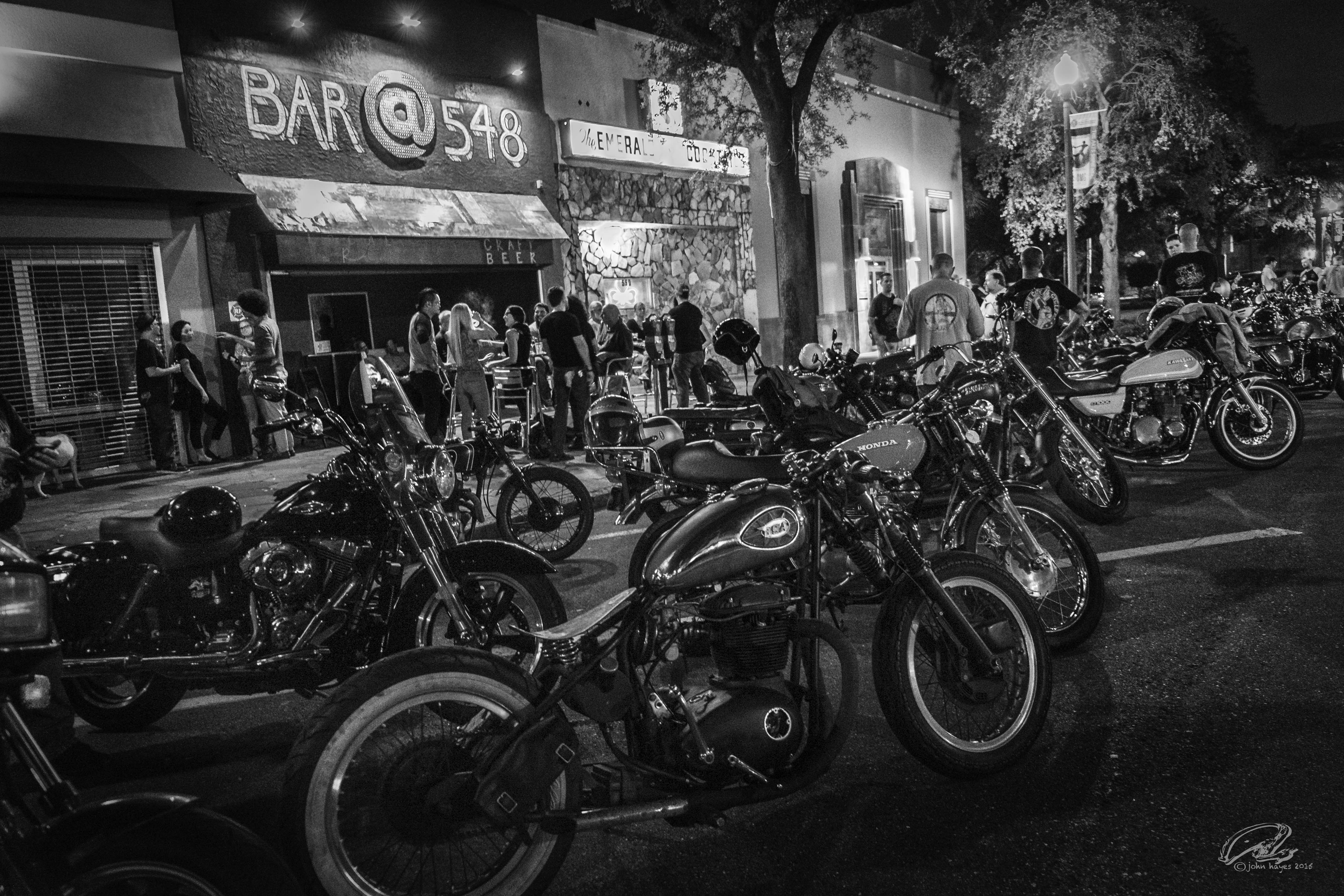 Posted on August 9, 2015August 9, 2015Biker Bar I should point out that this Friday night gathering in downtown St. Pete is not a Harley group but a much more benign mix of Honda, Kawasaki & Triumph. Fewer tattoos and prettier girls, too. 🙂 🙂 🙂 Share this: Click to email a link to a friend (Opens in new window) Email TweetLike Loading...