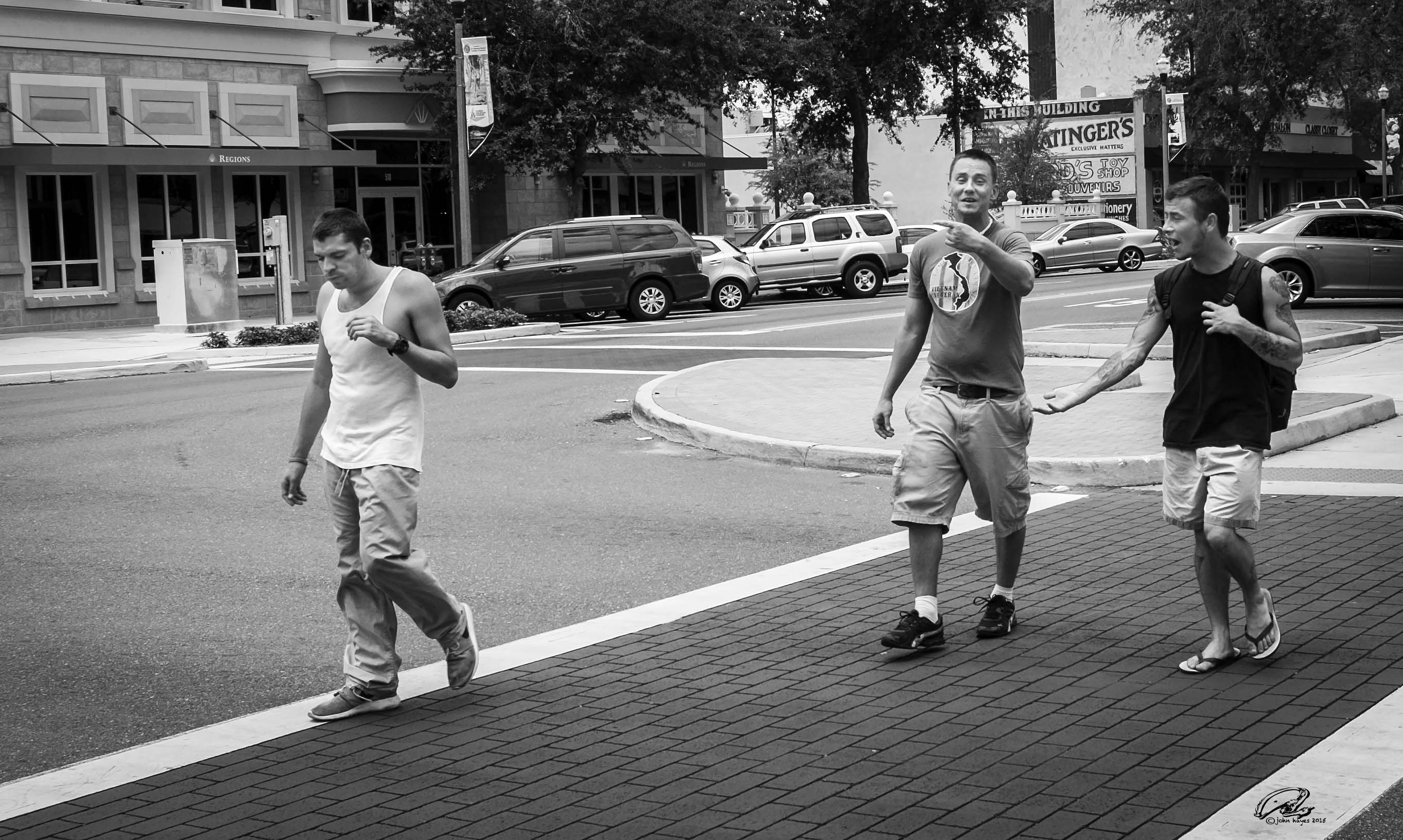 The kid on the left just picked a wad of something up off the street and threw it at me. He looks a bit unstable and his hackles are still raised for no reason I can detect. It was unprovoked aggression because my camera was unobtrusively cradled in my hand down behind my right leg but I immediately shouldered it and fired off a sustained ‘mad minute’ burst on full-automatic. His two companions are exhibiting mock outrage.
