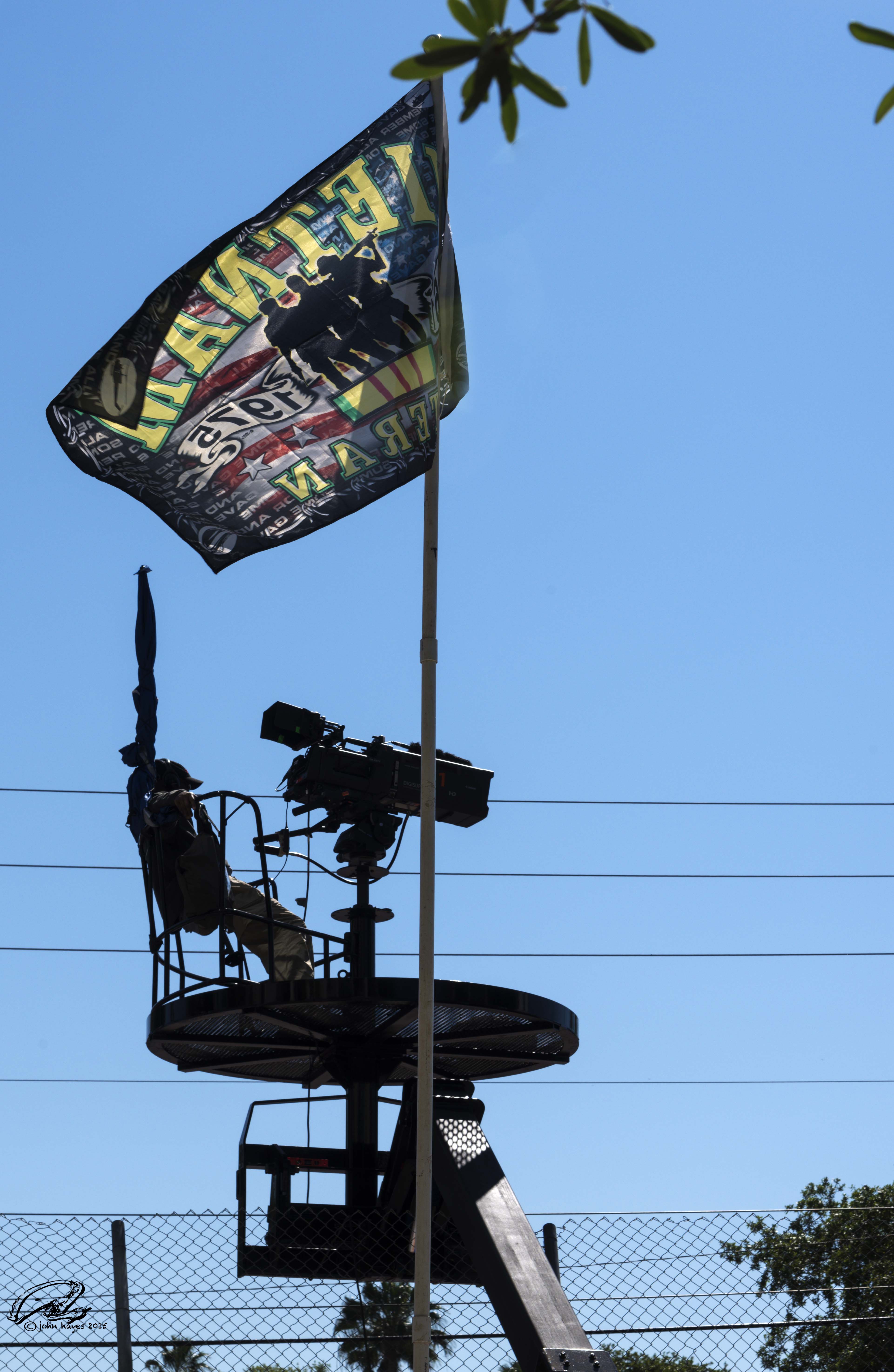 Posted on April 8, 2015April 8, 2015Observation Post The anomaly of lethal-looking equipment atop a viewing platform alongside a fenced perimeter under a Vietnam War-related flag in downtown St. Petersburg. Share this: Click to email a link to a friend (Opens in new window) Email TweetLike Loading...